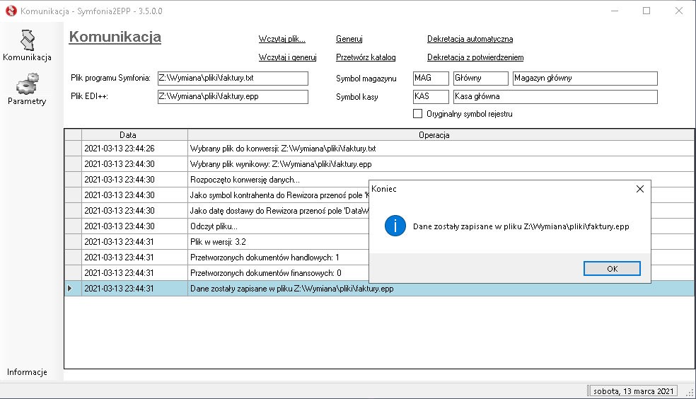 Program pozwala na konwersję plików generowanych przez program Symfonia do formatu EPP. Dzięki temu firmy lub biura rachunkowe mogą zautomatyzować proces wprowadzania dokumentów handlowych do programu księgowego Rewizor GT lub Rachmistrz GT.